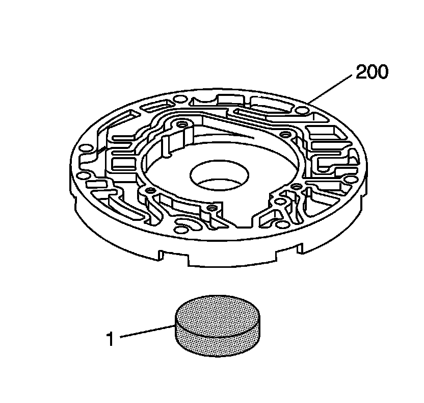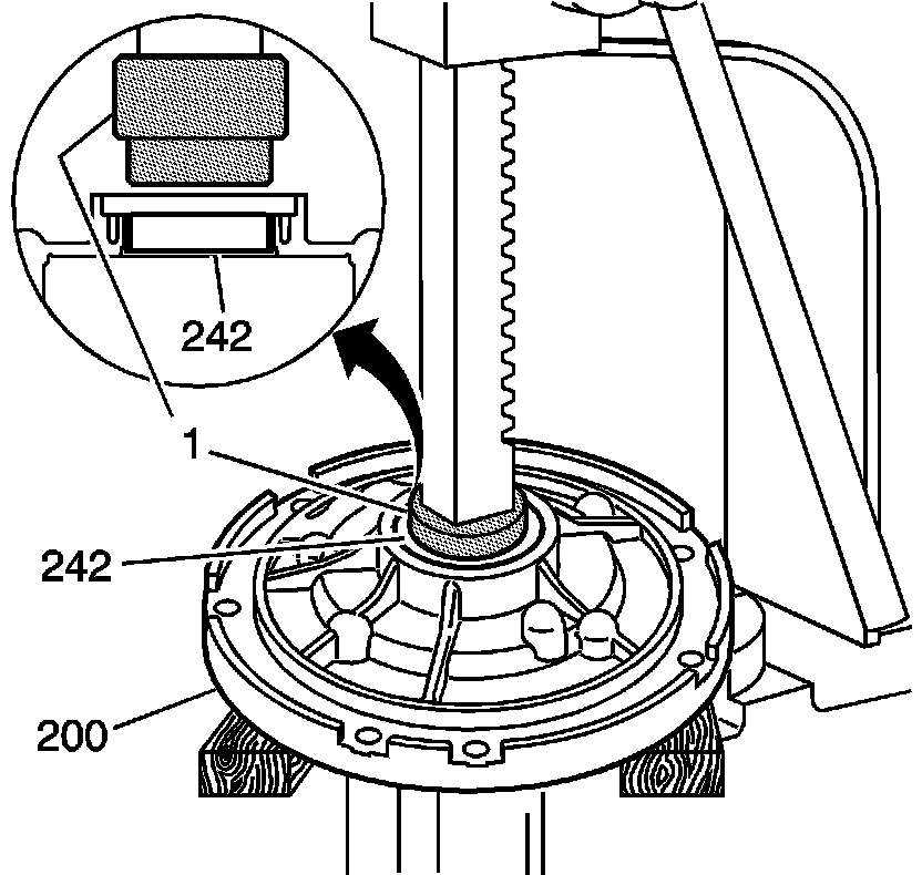 4. Using the J 41778-1 (1) with an arbor press, remove the pump body bushing (242).
