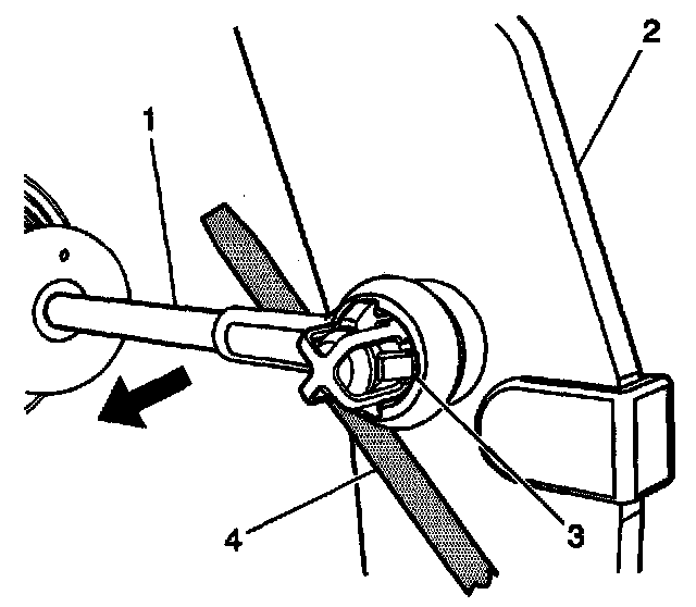 2. Complete the following in order to disengage the retainer (3) from the clutch pedal pin.