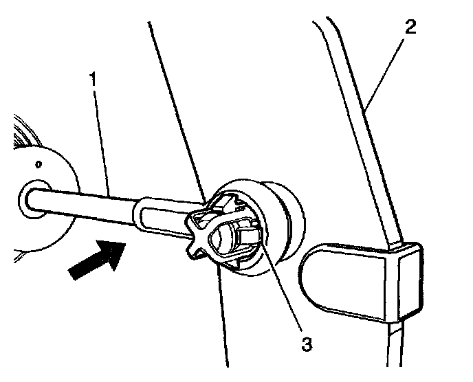 2.2. Pry the clutch master cylinder push rod (1) away from the clutch pedal assembly (2). Discard the retainer (3).