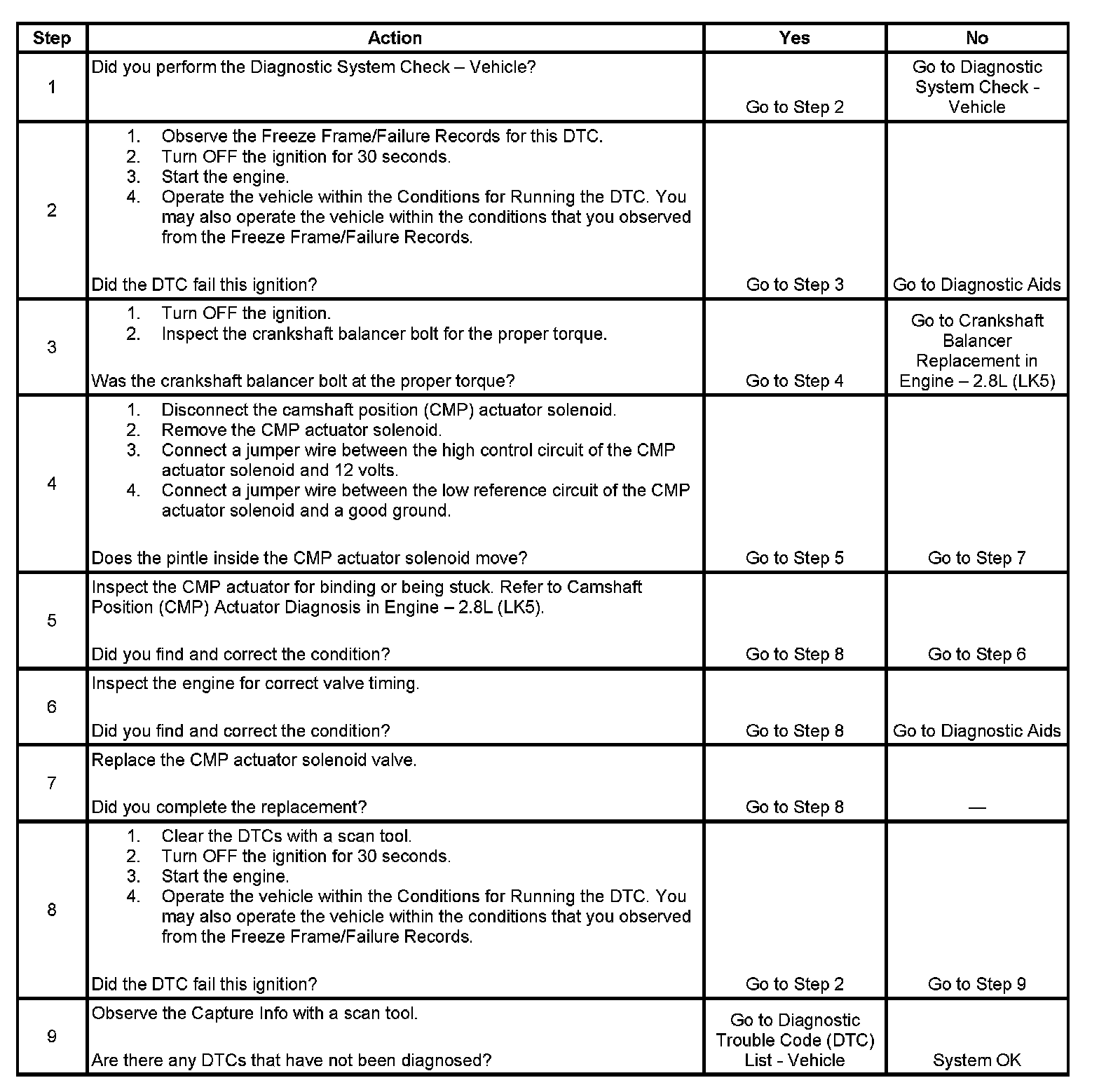 - The camshaft position (CMP) actuator is commanded to zero.