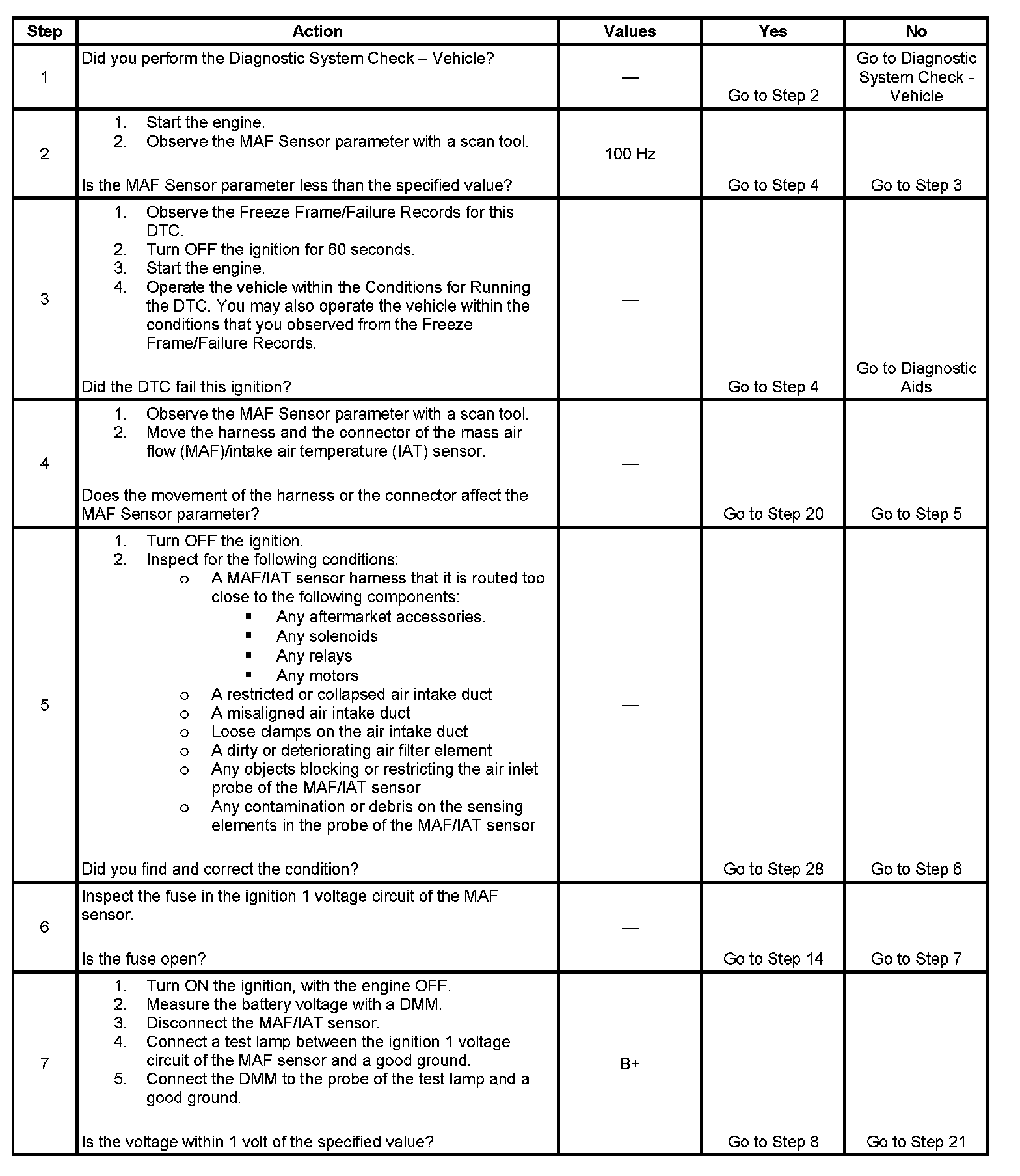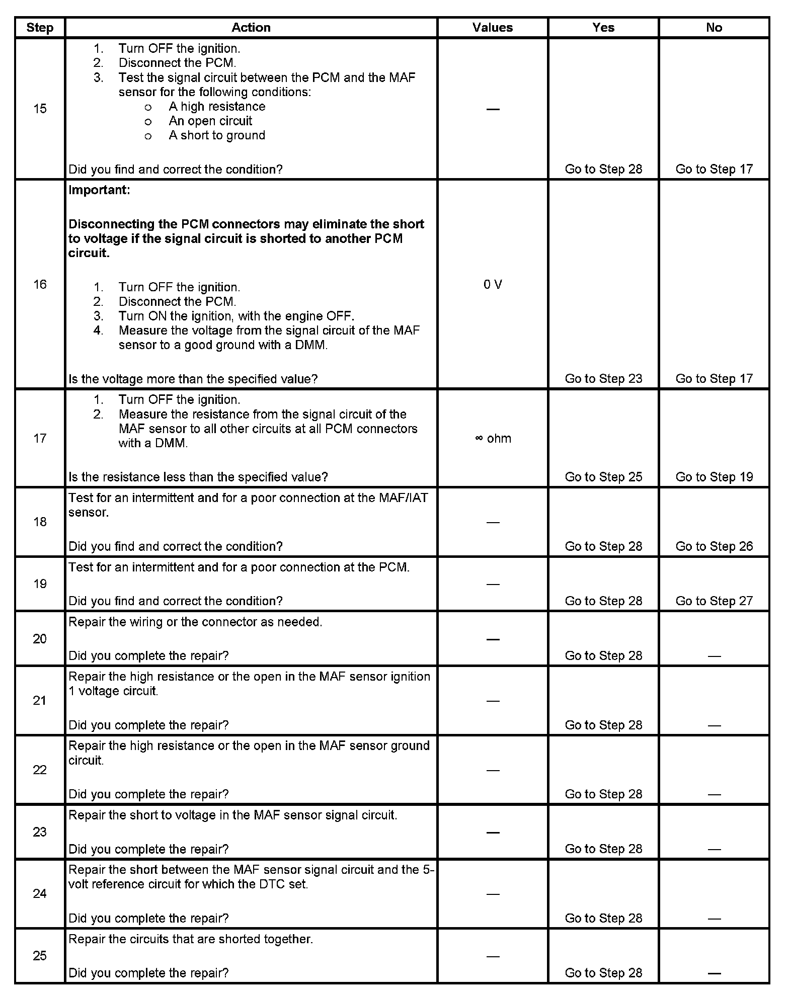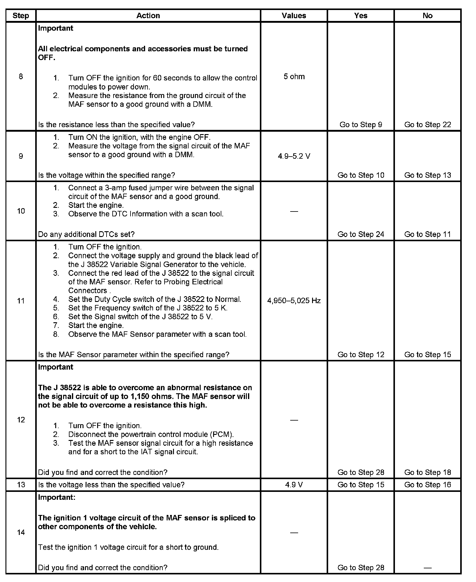 10. This step tests the signal circuit of the MAF sensor for a short to another 5-volt reference circuit.