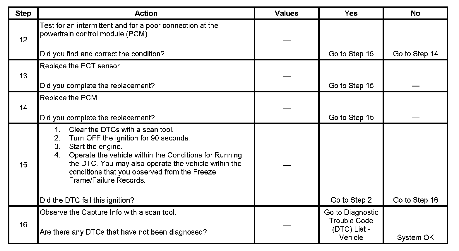 - A current DTC, Last Test Failed, clears when the diagnostic runs and passes.