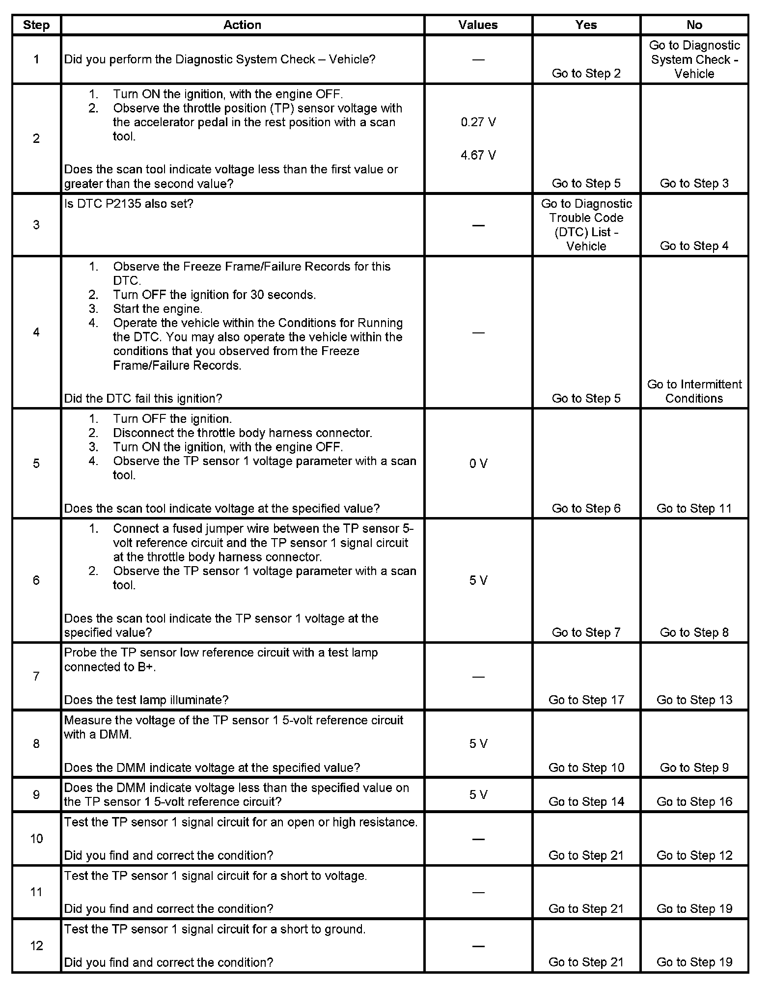 DTC P0120 Throttle Position (TP) Sensor 1 Circuit