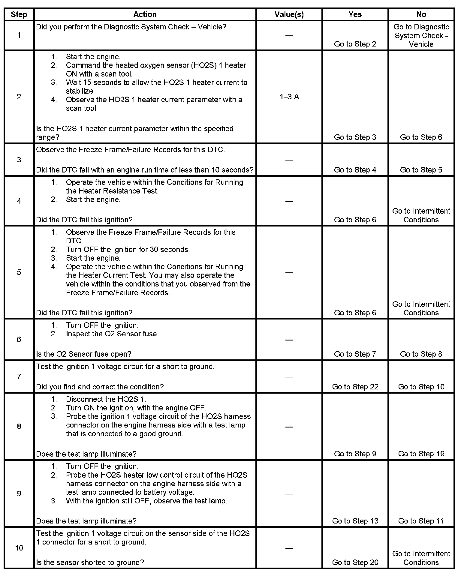- The PCM detects that the HO2S 1 heater current parameter is more than 3 amps or less than 1 amp.