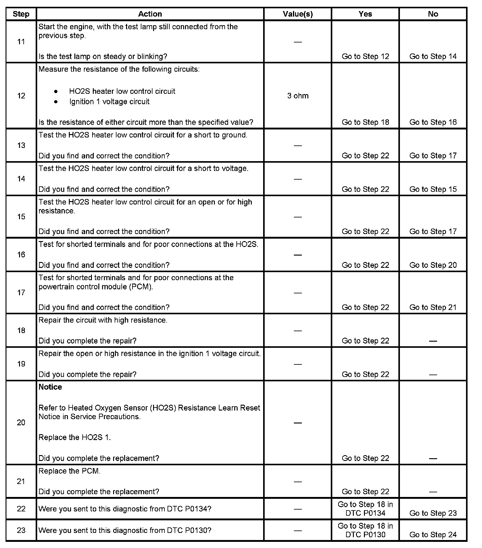 If the PCM detects that the heater current or the heater calculated resistance is not within an expected range, DTC P0135 sets for HO2S 1.
