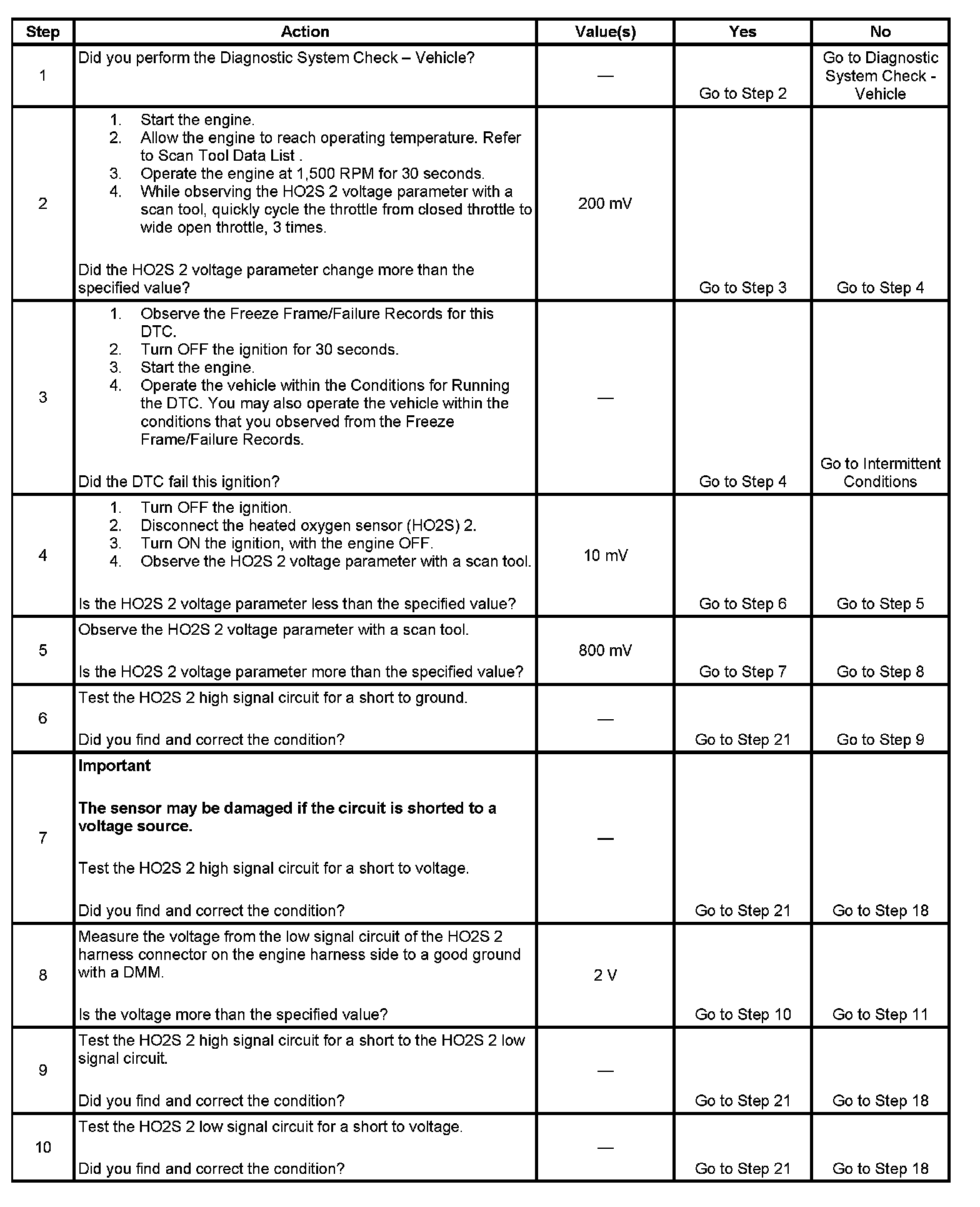 2. If the voltage does not change more that the specified value, the condition is present.