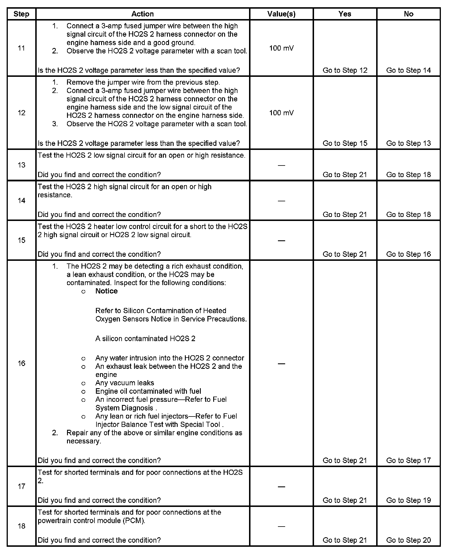 1. The PCM detects that the HO2S 2 did not transition below 300 mV and above 650 mV during the passive test.