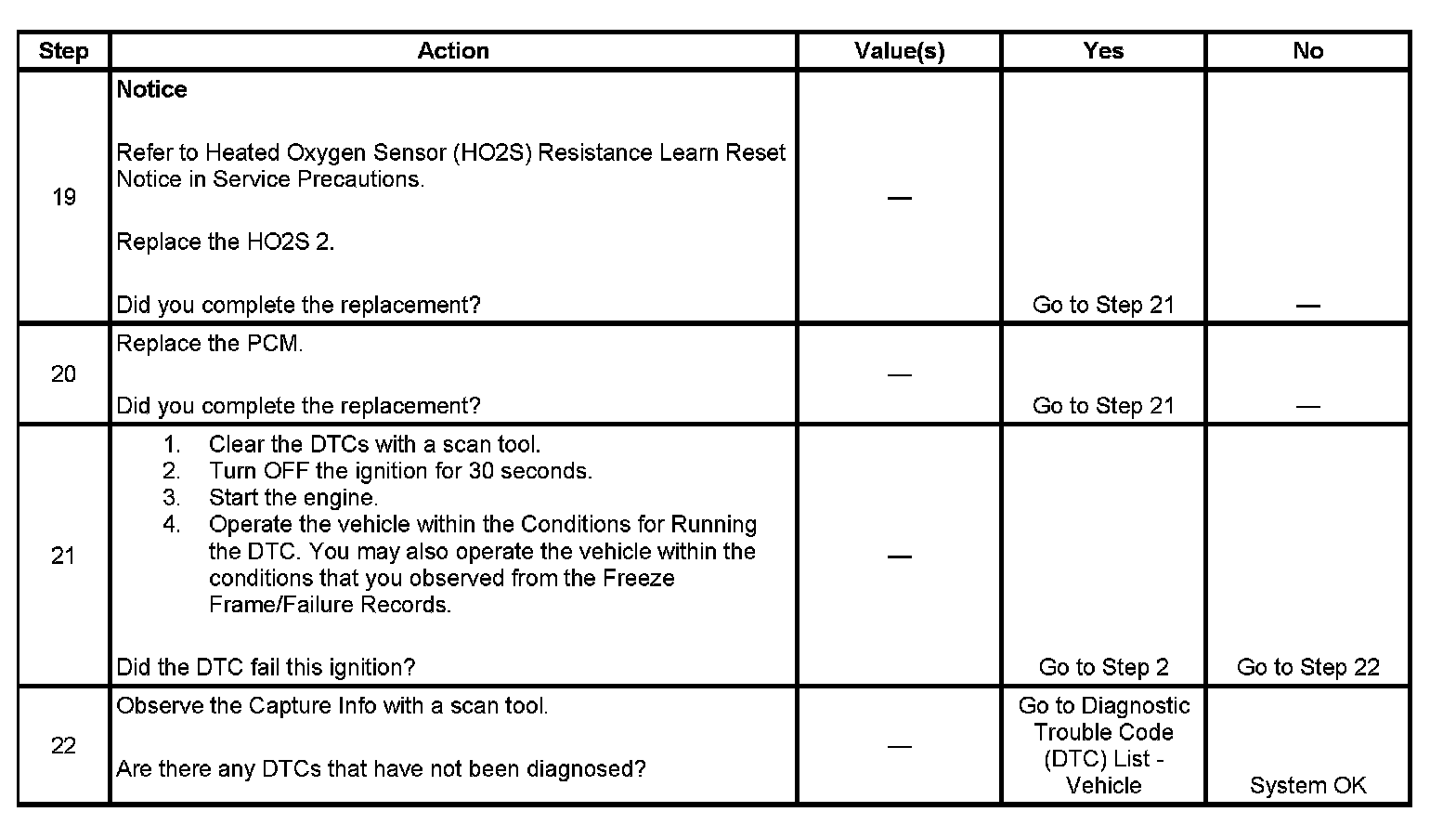 - A current DTC, Last Test Failed, clears when the diagnostic runs and passes.