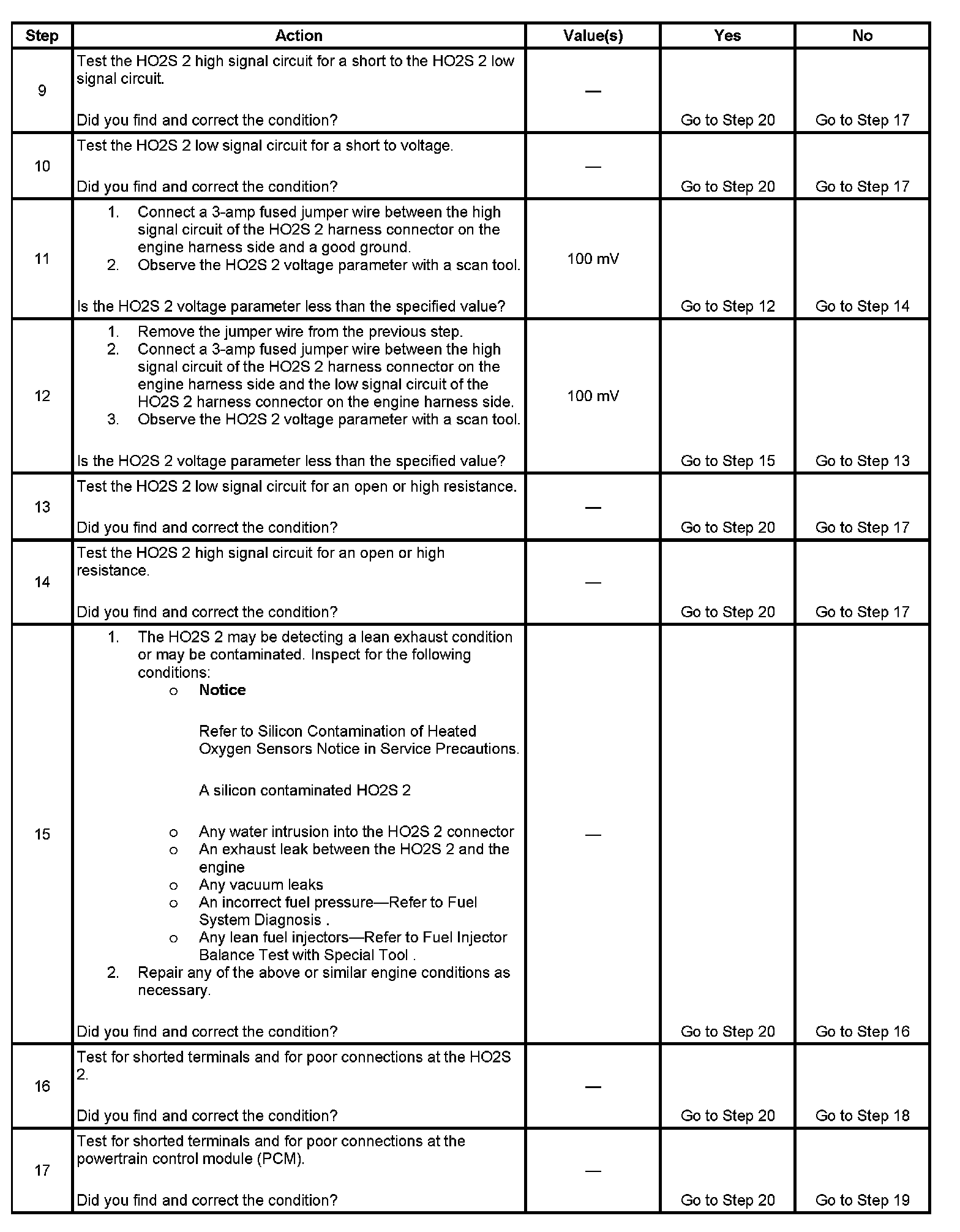 - The PCM detects that the HO2S 2 voltage parameter is less than 550 mV and the HO2S 1 parameter is more than 700 mV.