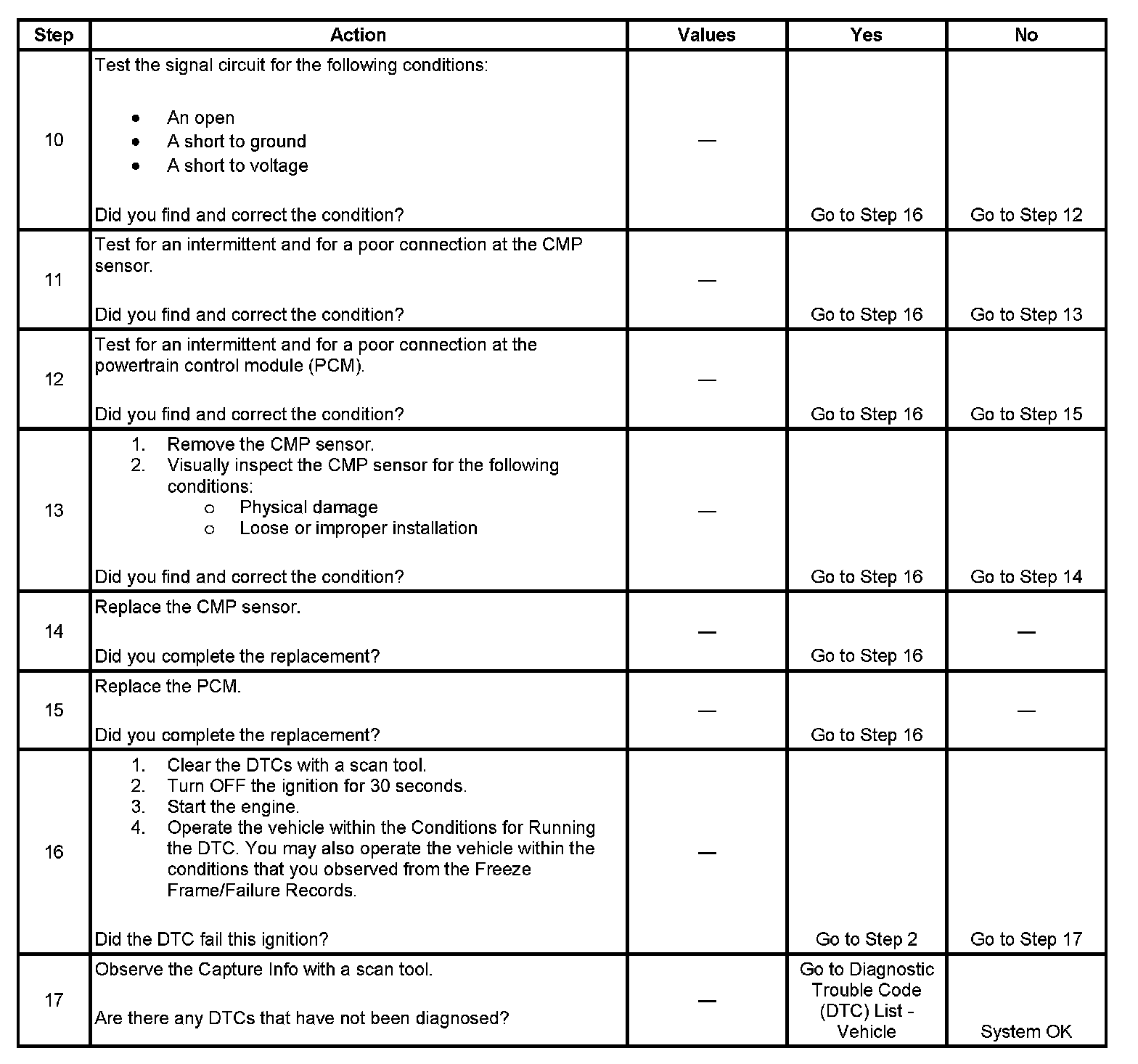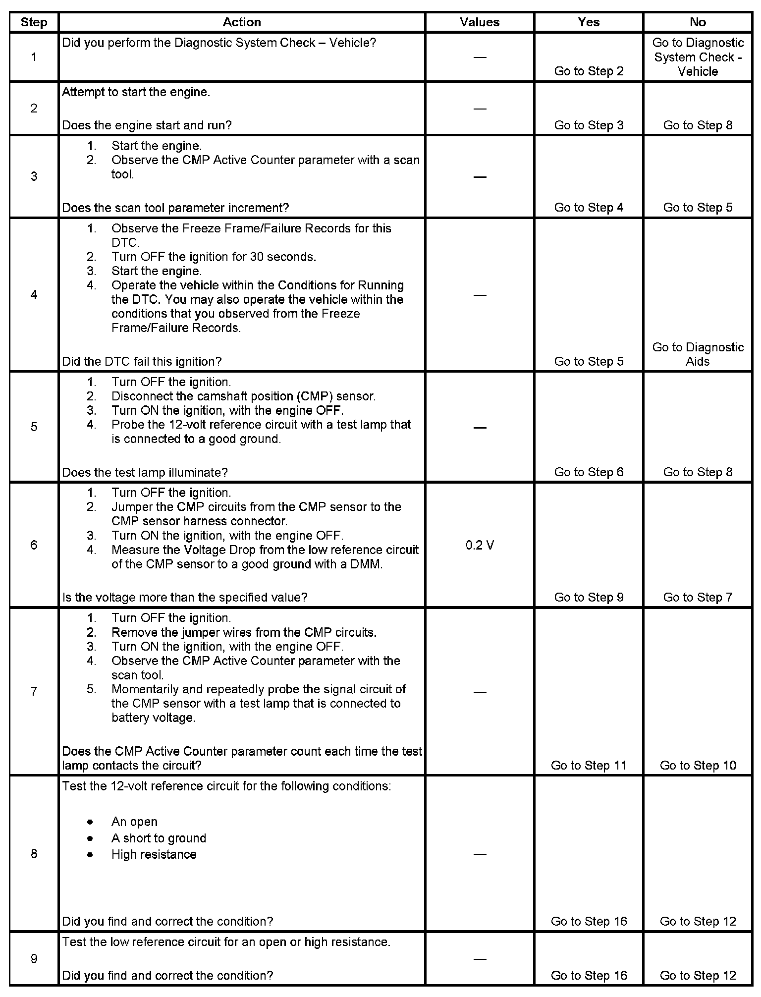 7. This step tests the CMP sensor signal circuit. If the CMP Active Counter counts when the circuit is touched, it is OK.
