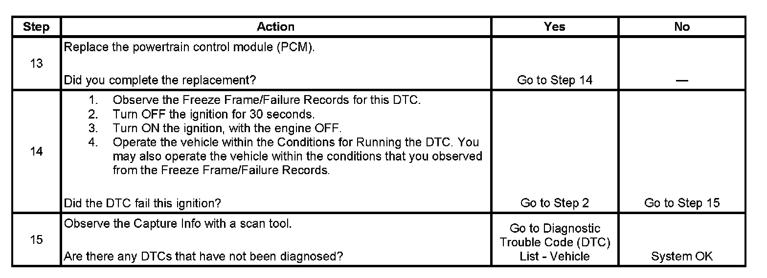 - The control module records the operating conditions at the time the diagnostic fails. The first time the diagnostic fails, the control module stores this information in the Failure Records. If the diagnostic reports a failure on the second consecutive ignition cycle, the control module records the operating conditions at the time of the failure. The control module writes the operating conditions to the Freeze Frame and updates the Failure Records.