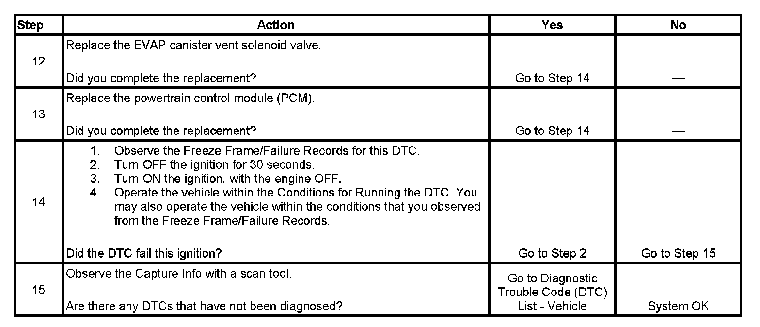 - A current DTC, Last Test Failed, clears when the diagnostic runs and passes.