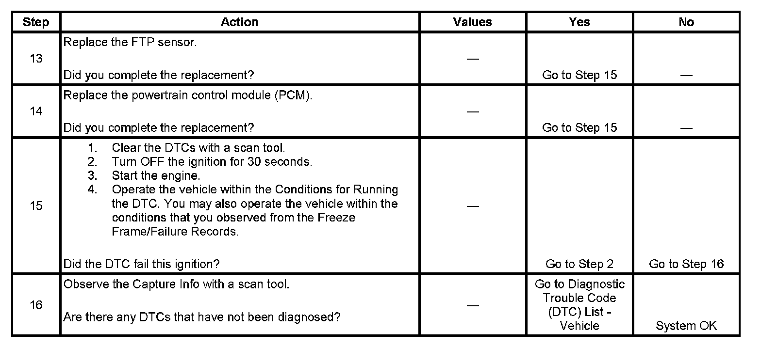 - The fuel tank pressure (FTP) sensor voltage is more than 4.9 volts.