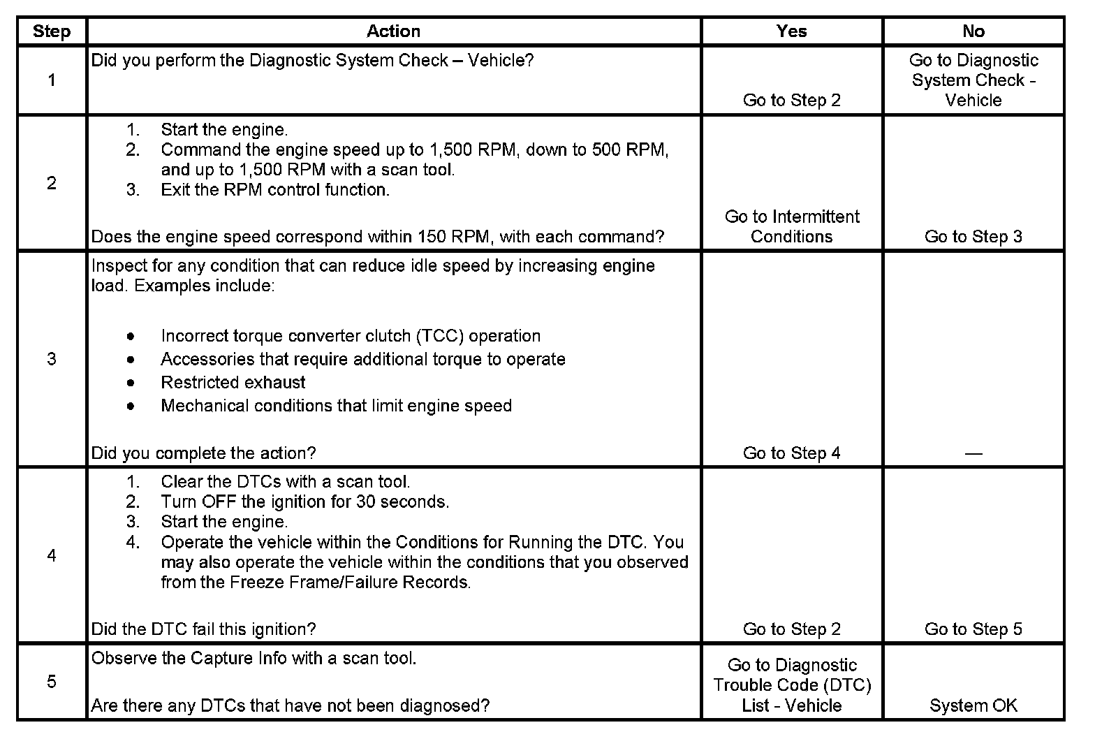 - The actual idle speed is approximately 150 RPM greater than the desired idle speed.