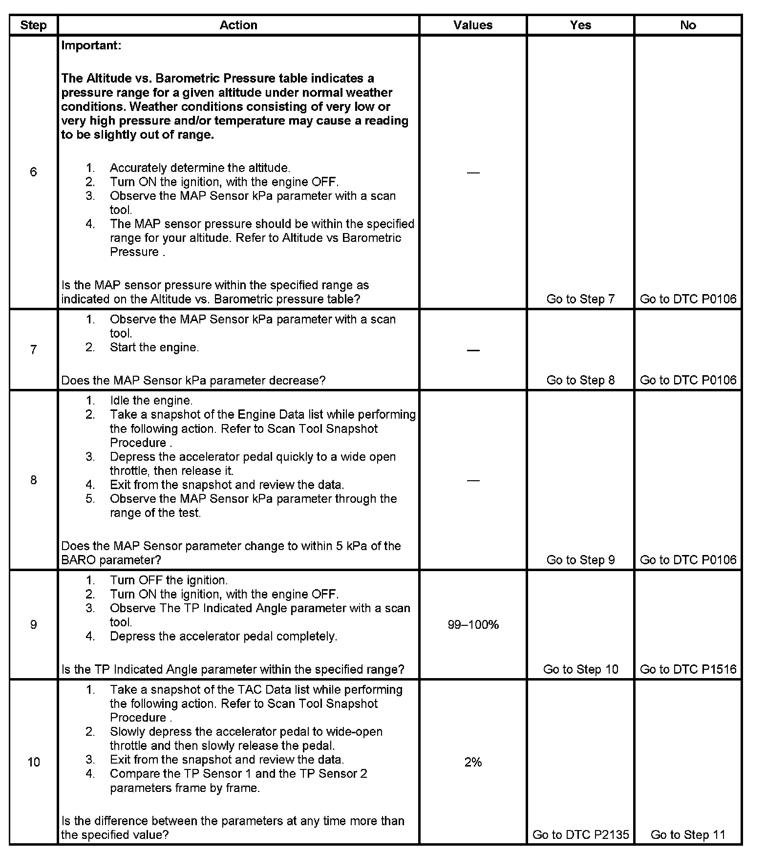 - A high resistance on the low reference circuit of the MAP sensor will skew the sensor value and may cause this DTC to set.
