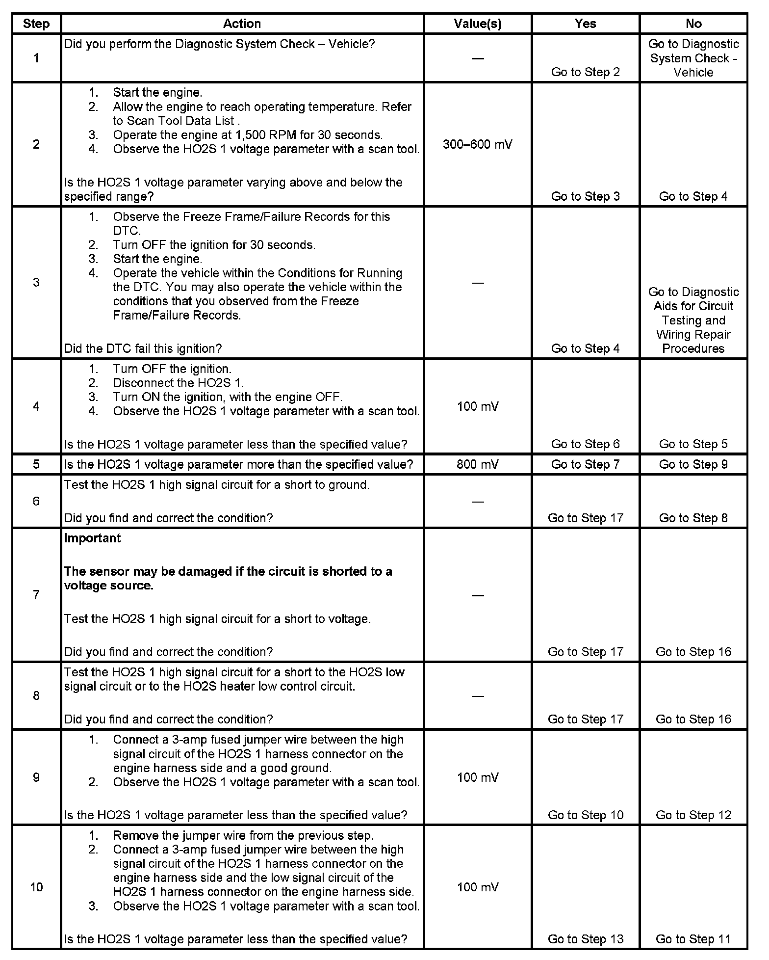 This diagnostic will only run once per ignition cycle. The ECM monitors the rich-to-lean and lean-to-rich transitions. A transition is defined as the HO2S voltage changes from above 600 mV to below 300 mV or from below 300 mV to above 600 mV. If the ECM detects that the transition time ratio is not within a specified range, DTC P1134 will set.