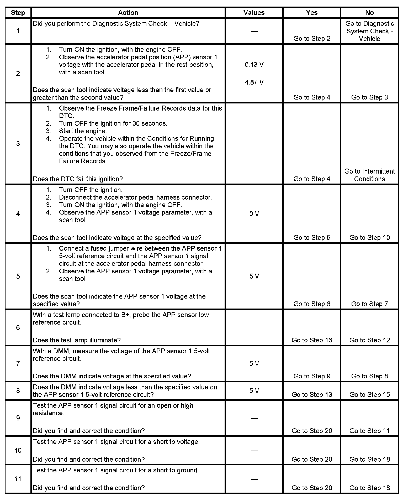DTC P2120 Accelerator Pedal Position (APP) Sensor 1 Circuit