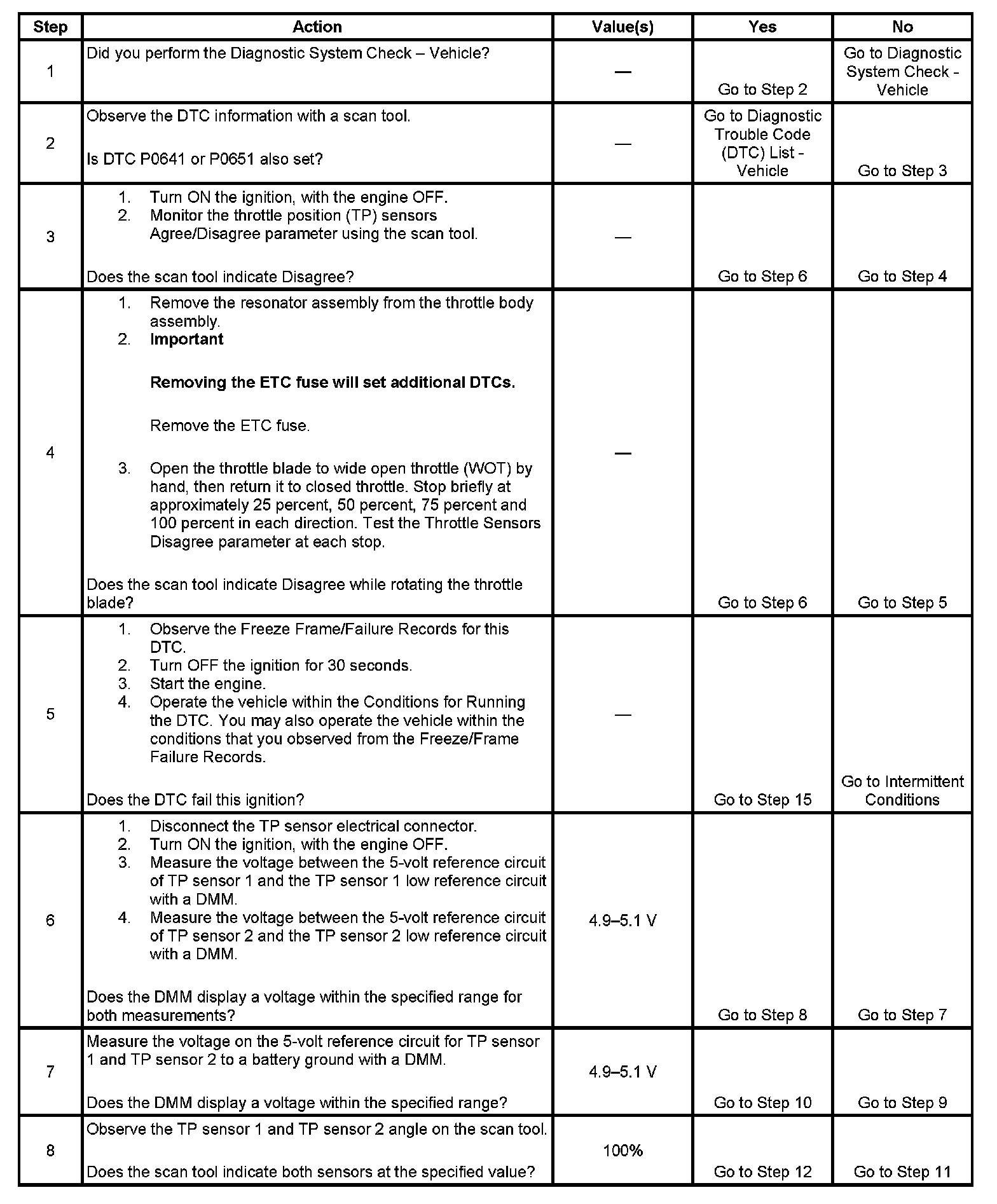 6. This step tests the integrity of the 5-volt reference and ground circuits of the TP sensors.