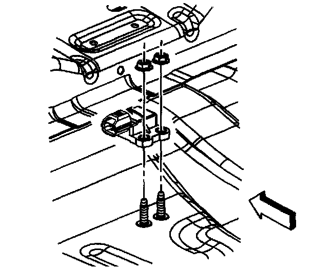 4. Remove the 2 nuts retaining the sensor to the floor panel.
