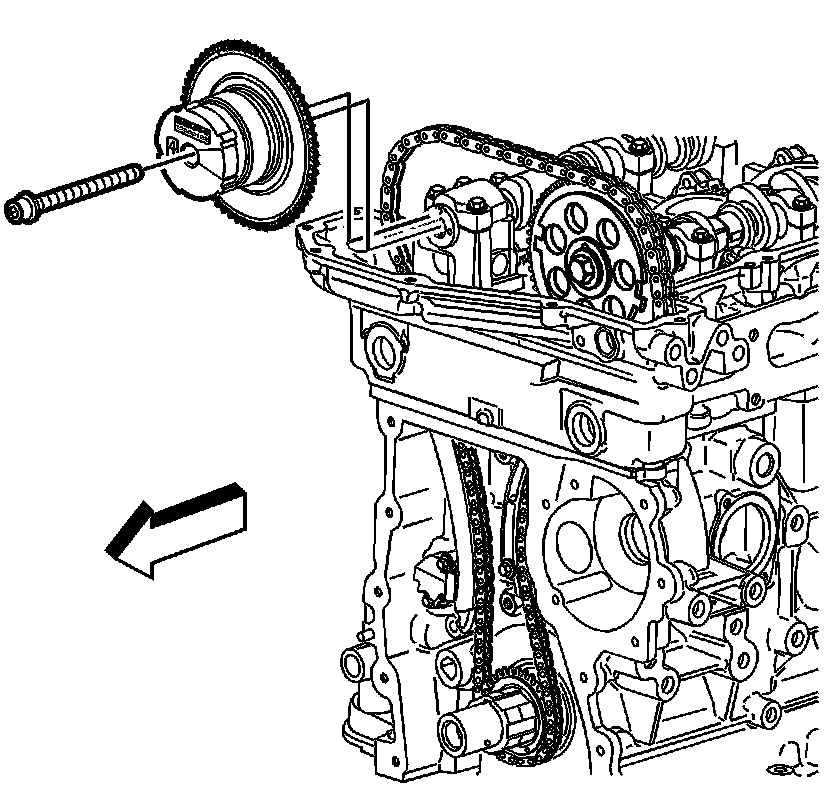 11. Remove the intake camshaft sprocket bolt.Discard the bolt.
