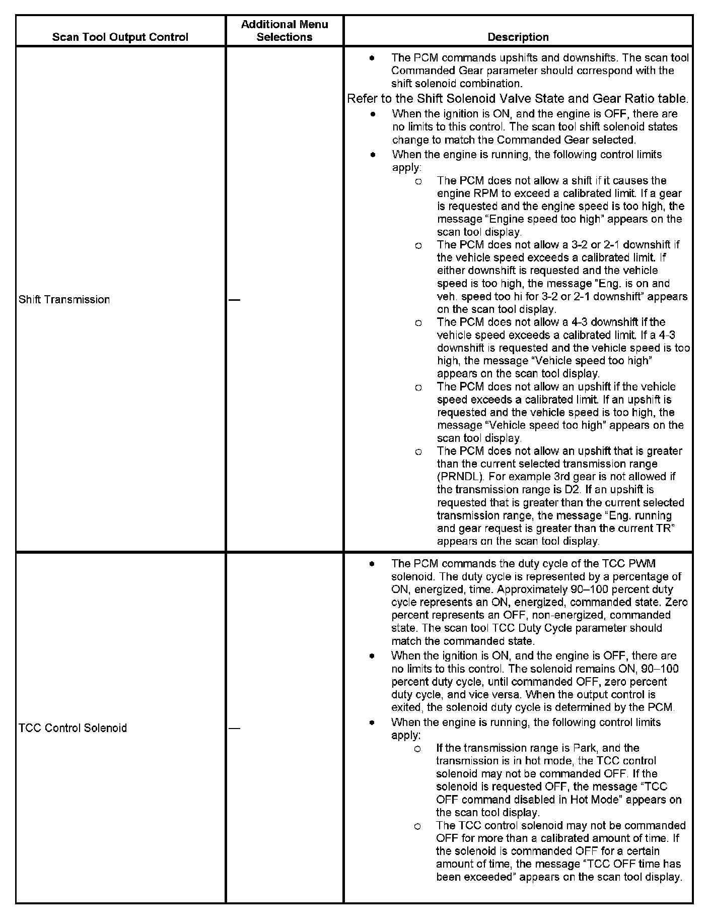 Scan Tool Output Controls: