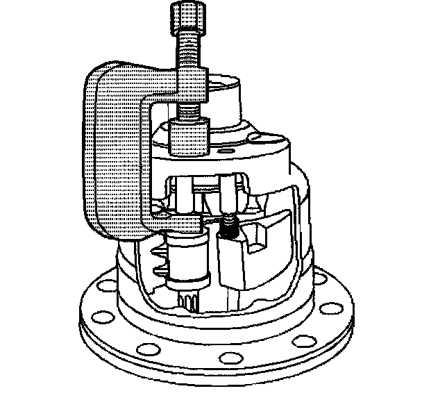 3. Remove the latching bracket assembly bushing using the J26252. To aid in the removal of the latching bracket assembly, turn the side gear as necessary to position the latching bracket assembly between two of the side gear teeth.
