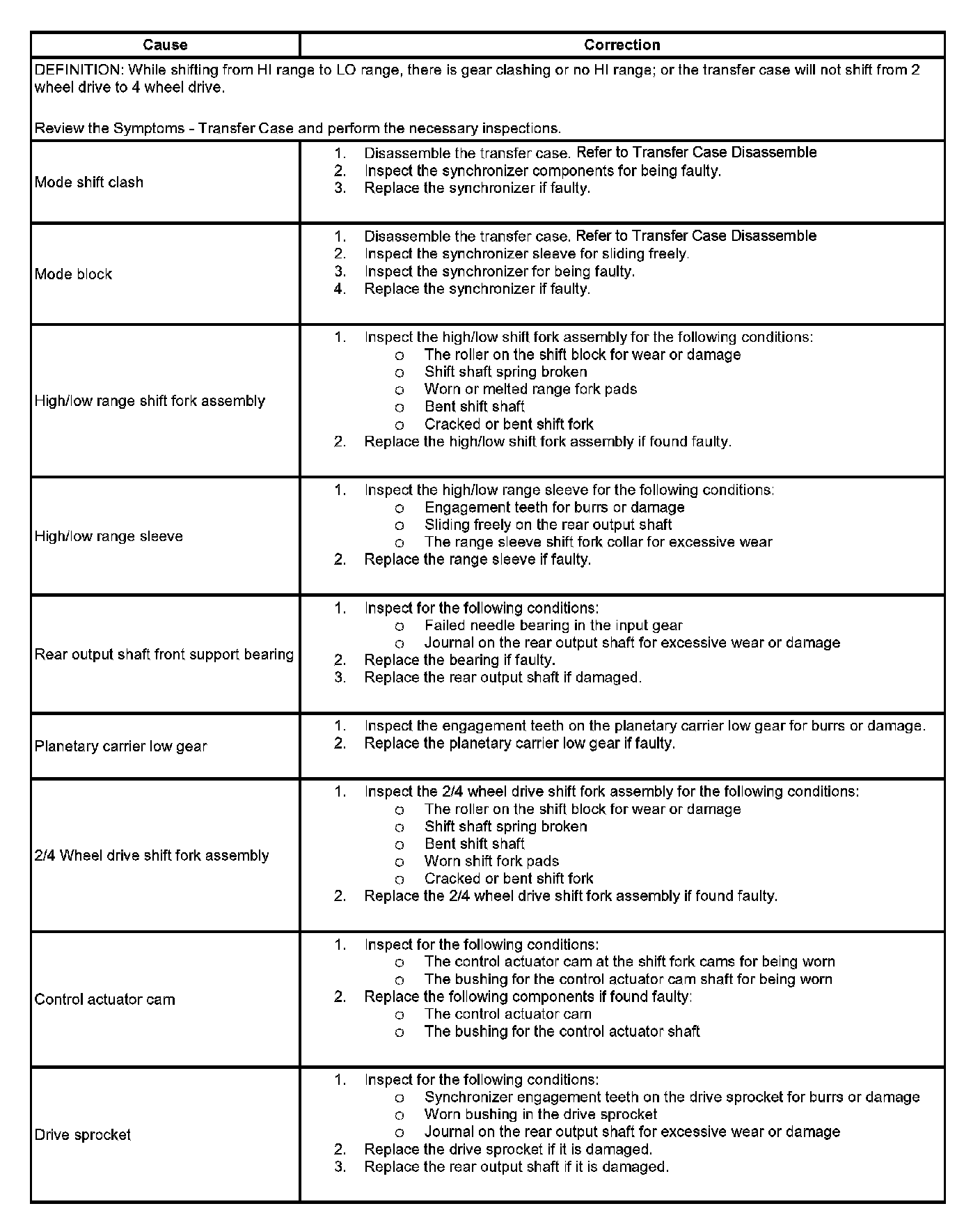 Transfer Case Will Not Shift: