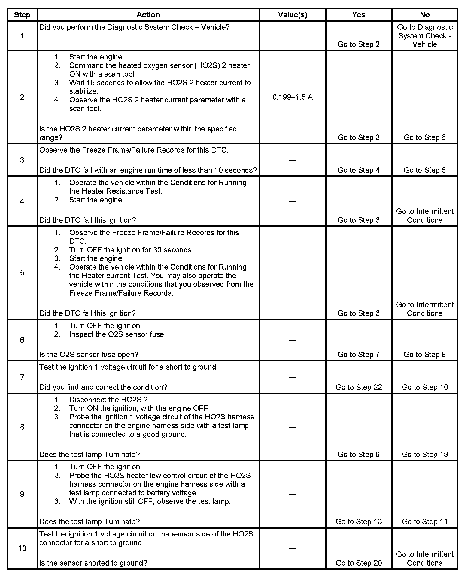 - The PCM detects that the HO2S 2 heater current parameter is more than 1.5 amps or less than 0.199 amps.