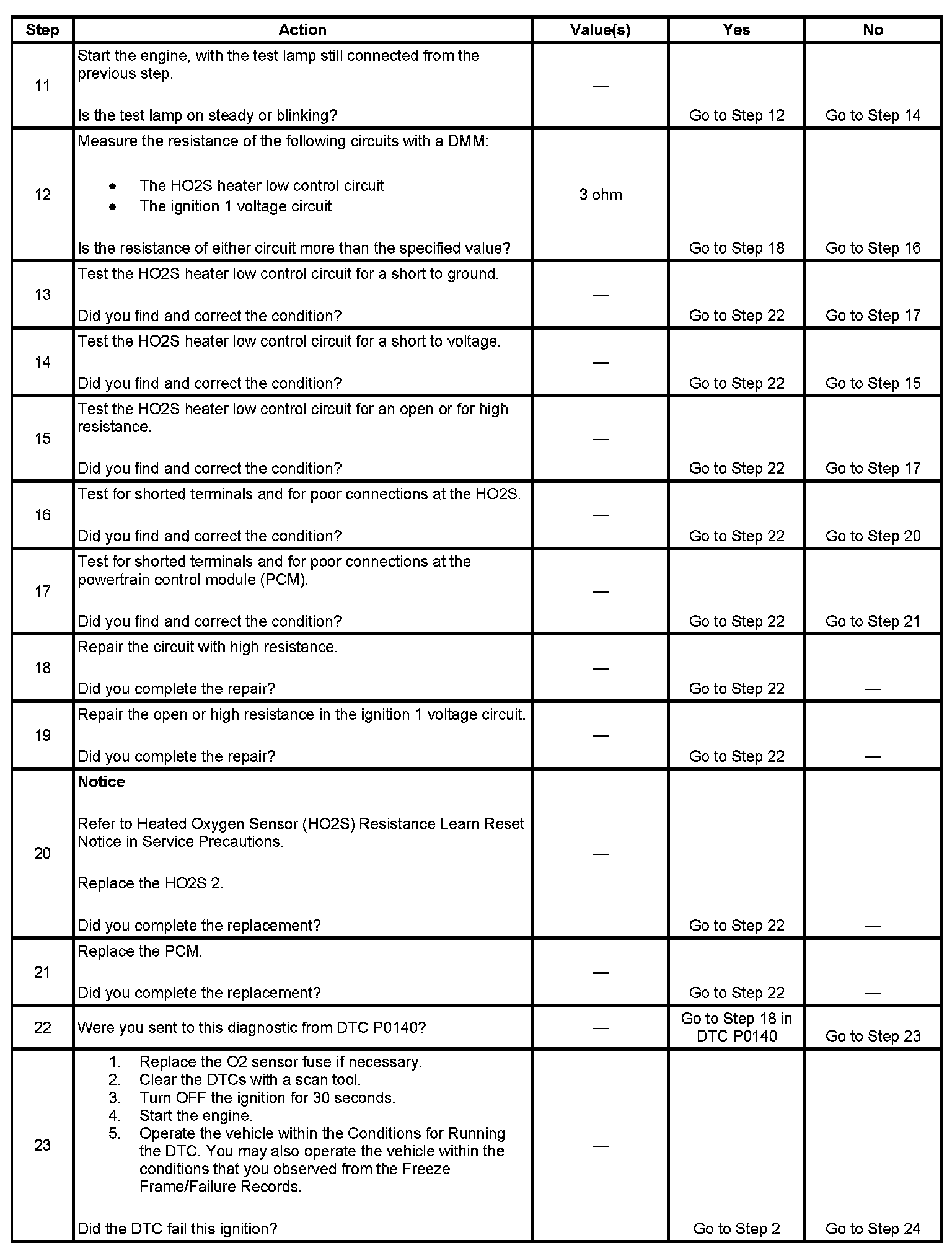 If the PCM detects that the heater current or the heater calculated resistance is not within an expected range, DTC P0141 sets for HO2S 2.