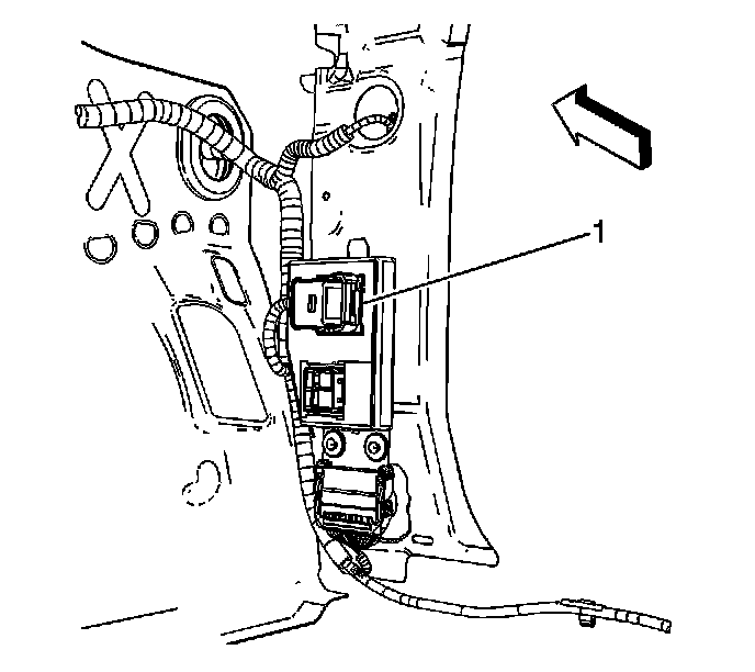 4. Disconnect the I/P wiring harness electrical connector (1) from the BCM.