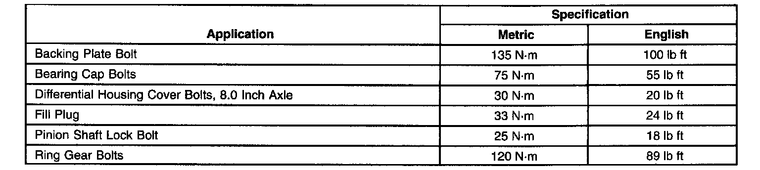 Fastener Tightening Specifications: