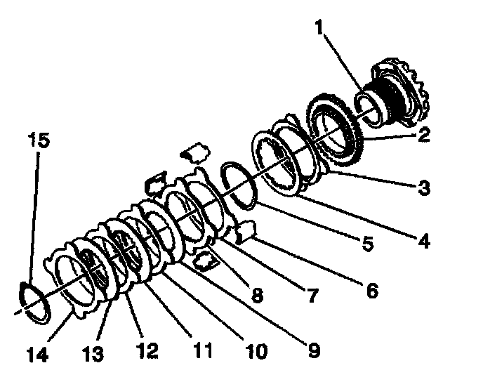 2.2. Remove the clutch discs and the splined discs (7-14).