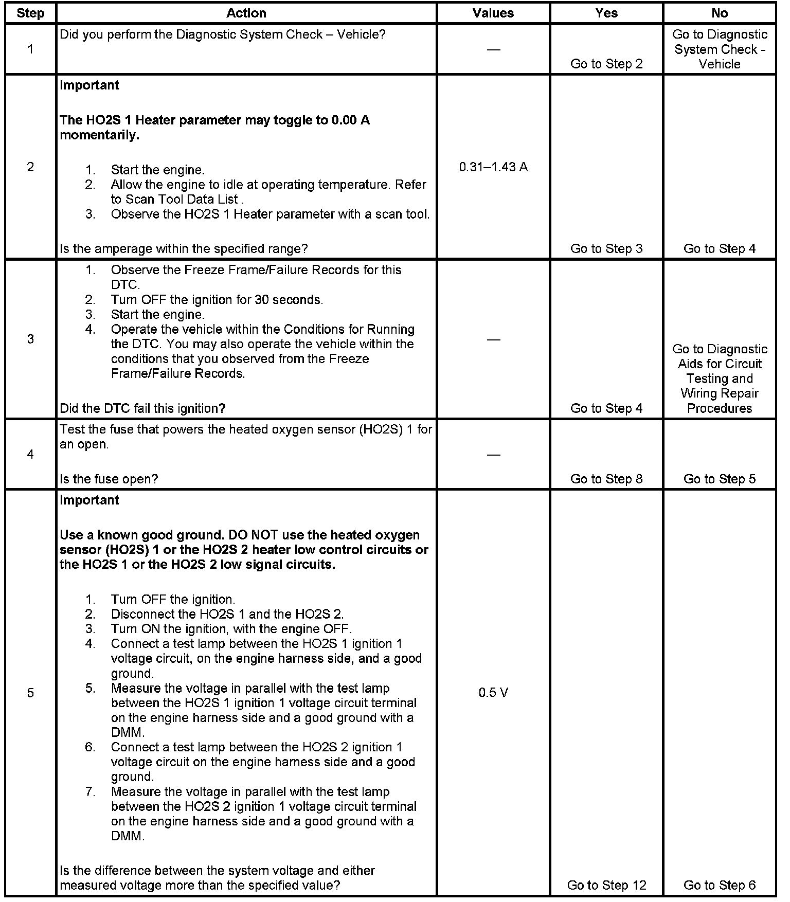 5. This step determines if high resistance is present in the HO2S 1 ignition 1 voltage circuit.