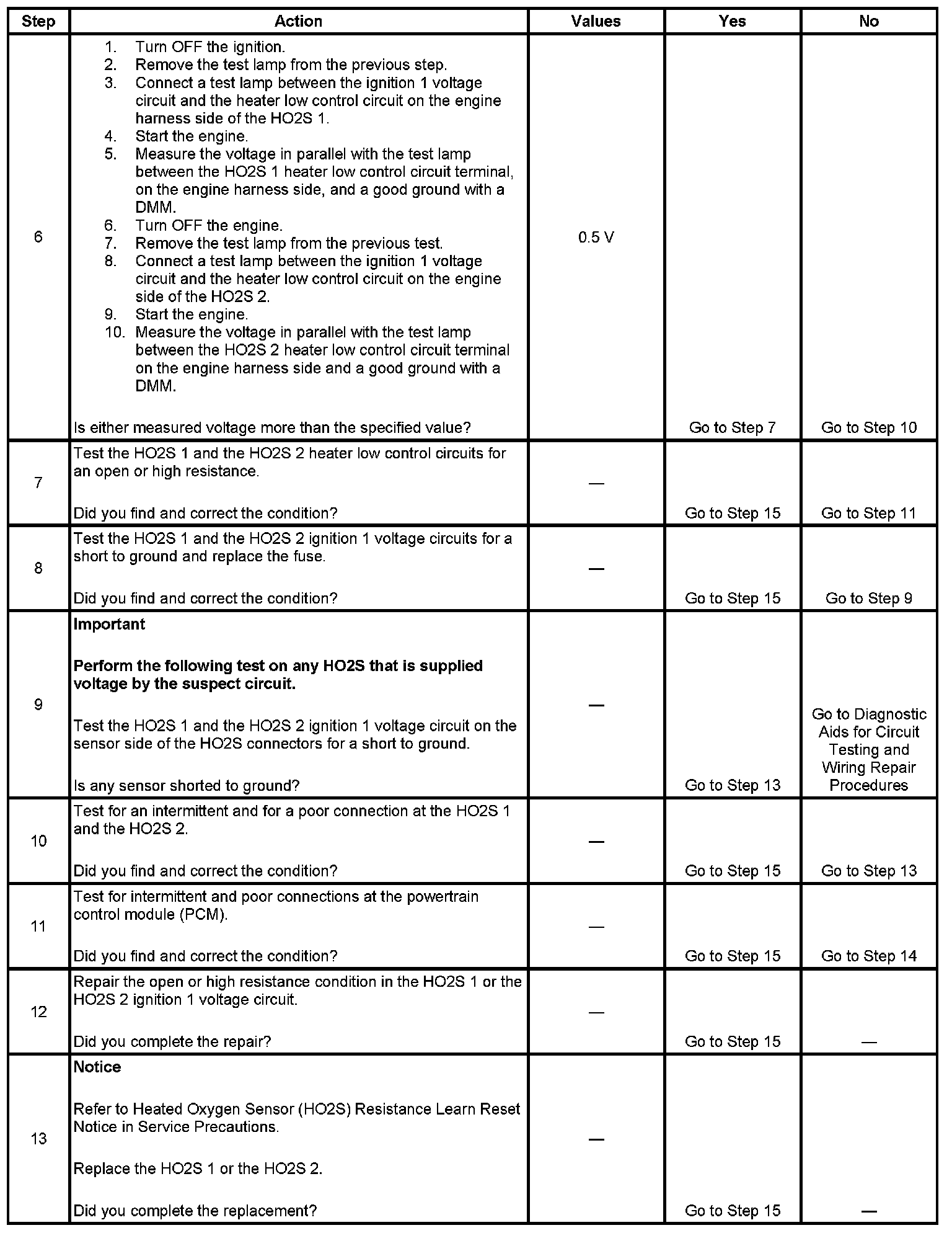 6. This step determines if high resistance is present in the HO2S 1 heater low control circuit.
