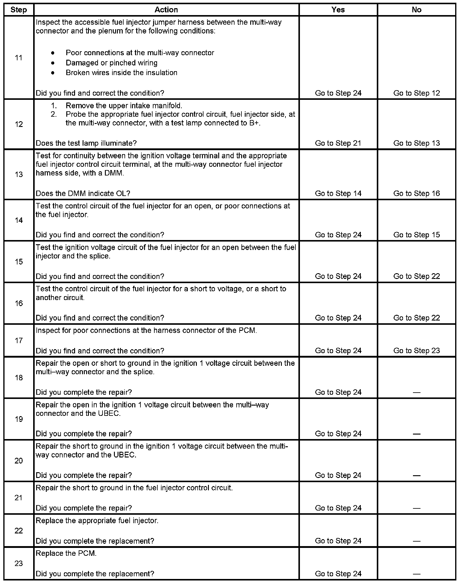 16. This step isolates the circuit between the multi-way connector and the fuel injector. A short to voltage on the fuel injector control circuit will set this DTC.