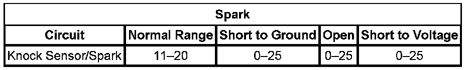 The Knock Sensor (KS) System enables the powertrain control module (PCM) to control the ignition timing for the best possible performance while protecting the engine from potentially damaging levels of detonation. The sensors are located below each cylinder head on the engine block. The KS produces an AC voltage signal that varies depending on the vibration level during engine operation. The PCM adjusts the spark timing based on the amplitude and the frequency of the KS signal. The PCM receives the KS signal through a signal circuit. The KS ground is supplied by the PCM through a low reference circuit. The PCM learns a minimum KS noise level at idle and uses calibrated values for the rest of the RPM range. The PCM should monitor a normal KS signal within the noise channel. If the PCM malfunctions in a manner that will not allow proper diagnosis of the KS system, DTC P0325 sets. If the PCM detects the KS signal outside of the noise channel, or the KS signal is not present. DTC P0327 refers to the bank 1 KS and DTC P0332 refers to the bank 2 KS.