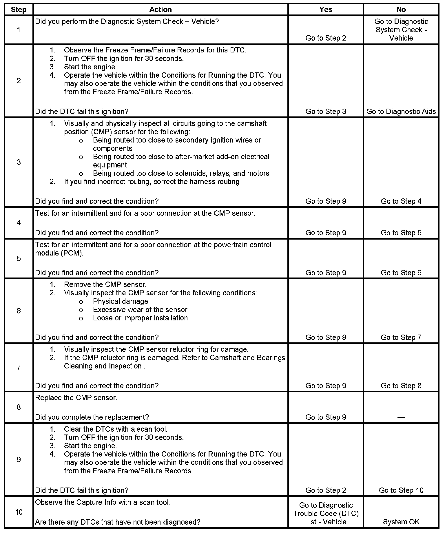 DTC P0341 Camshaft Position (CMP) Sensor Performance