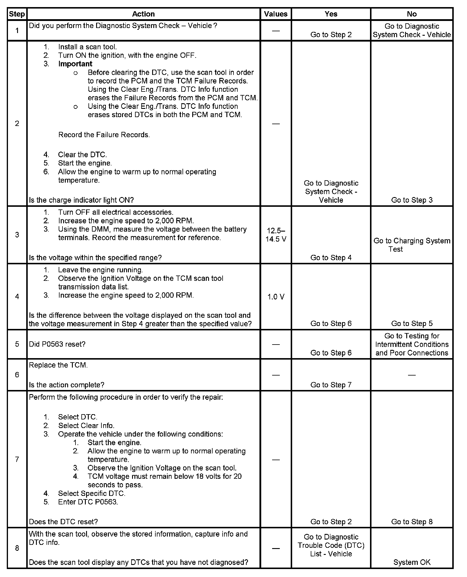 ^ The TCM stores DTC P0563 in TCM history.