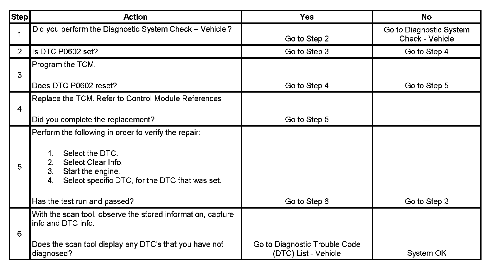 DTC P0603 Transmission Control Module (TCM) Long Term Memory Reset