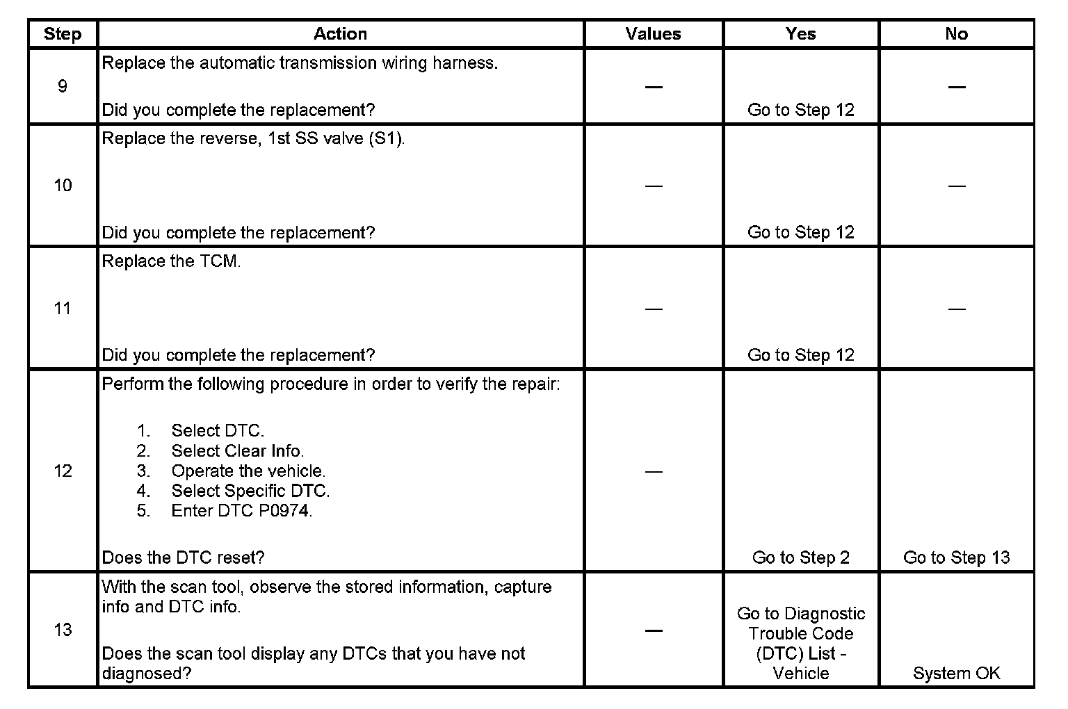 ^ The TCM stores DTC P0974 in TCM history.