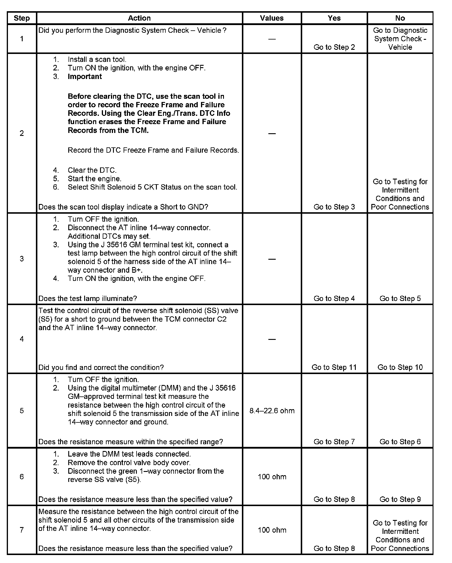 DTC P0985 Shift Solenoid (SS) 5 Control Circuit Low Voltage