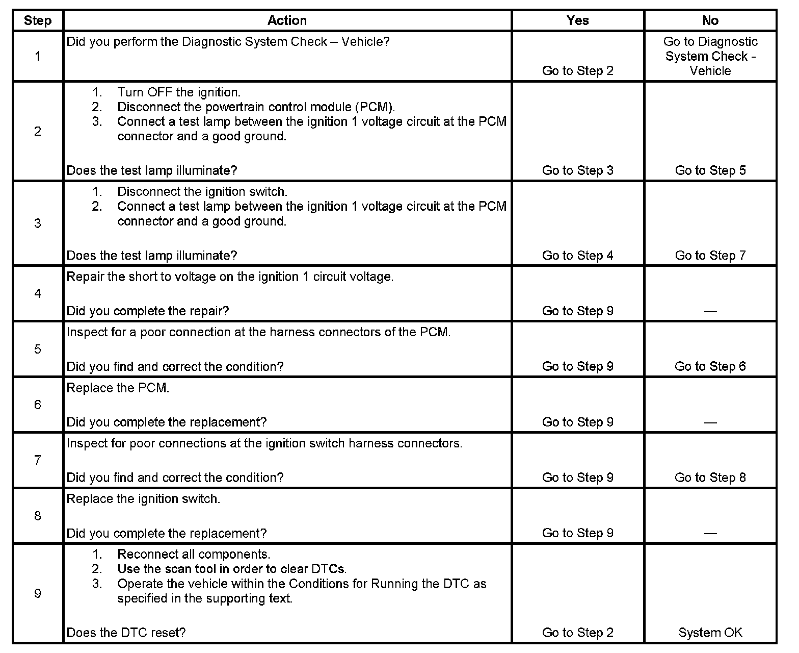 DTC P2535 Ignition 1 Switch Circuit High Voltage