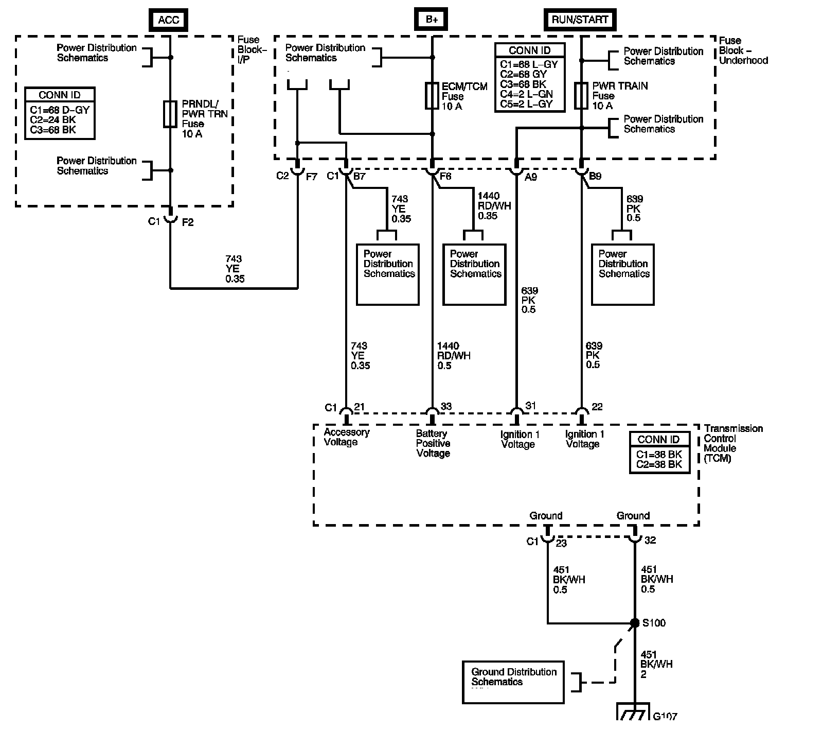 The transmission control module (TCM) samples the voltage on the Ignition Accessory voltage circuit every 0.1 seconds. Lower than normal voltage may be inadequate to operate the transmission control solenoids properly. Improper solenoid operation may cause erratic transmission operation, which may result in internal damage.