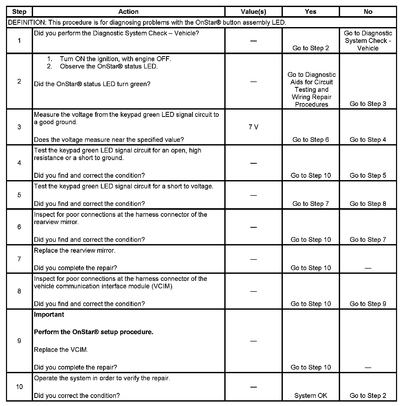 ONSTAR BUTTON LED INOPERATIVE