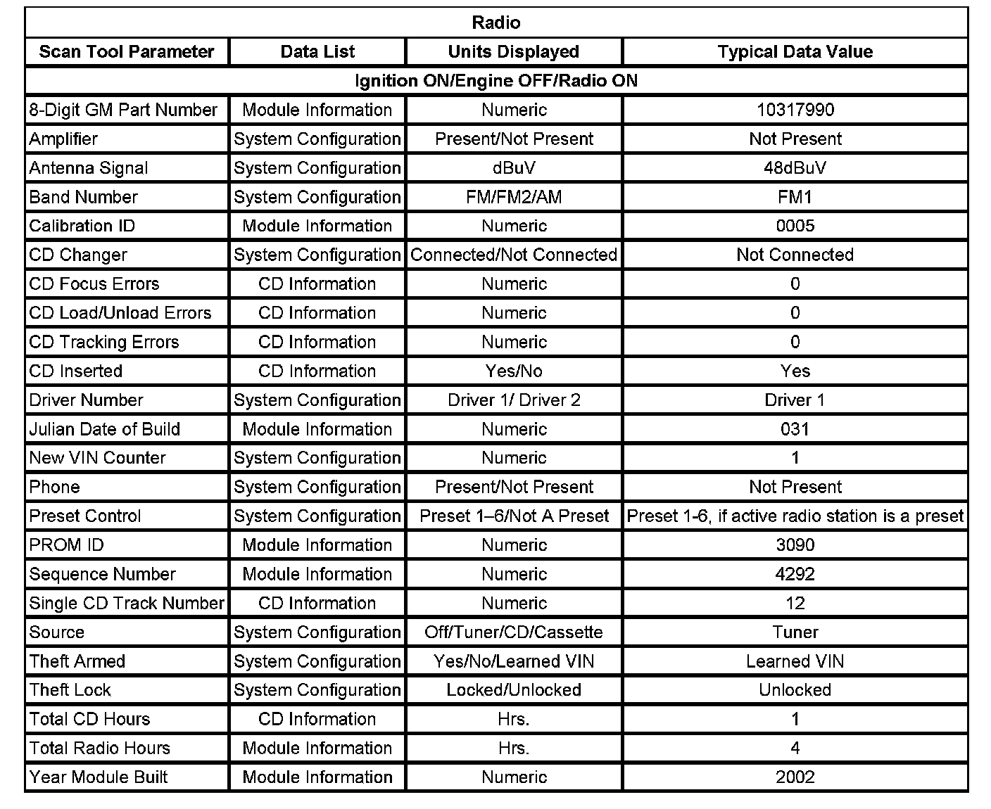 Scan Tool Data List
