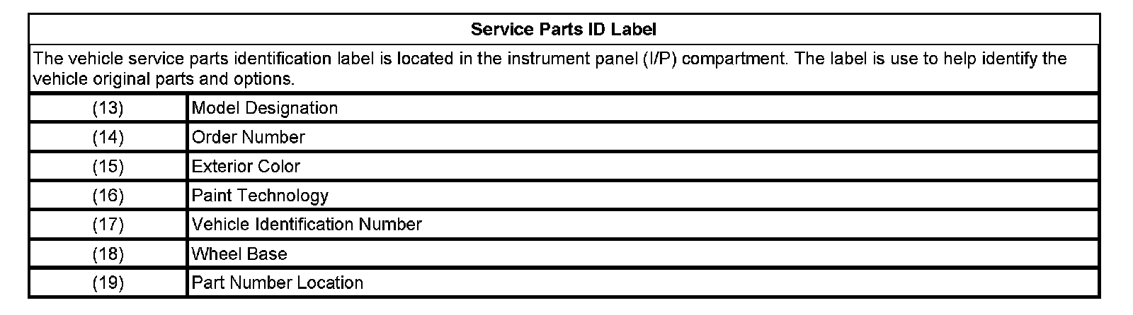 Service Parts ID Label: