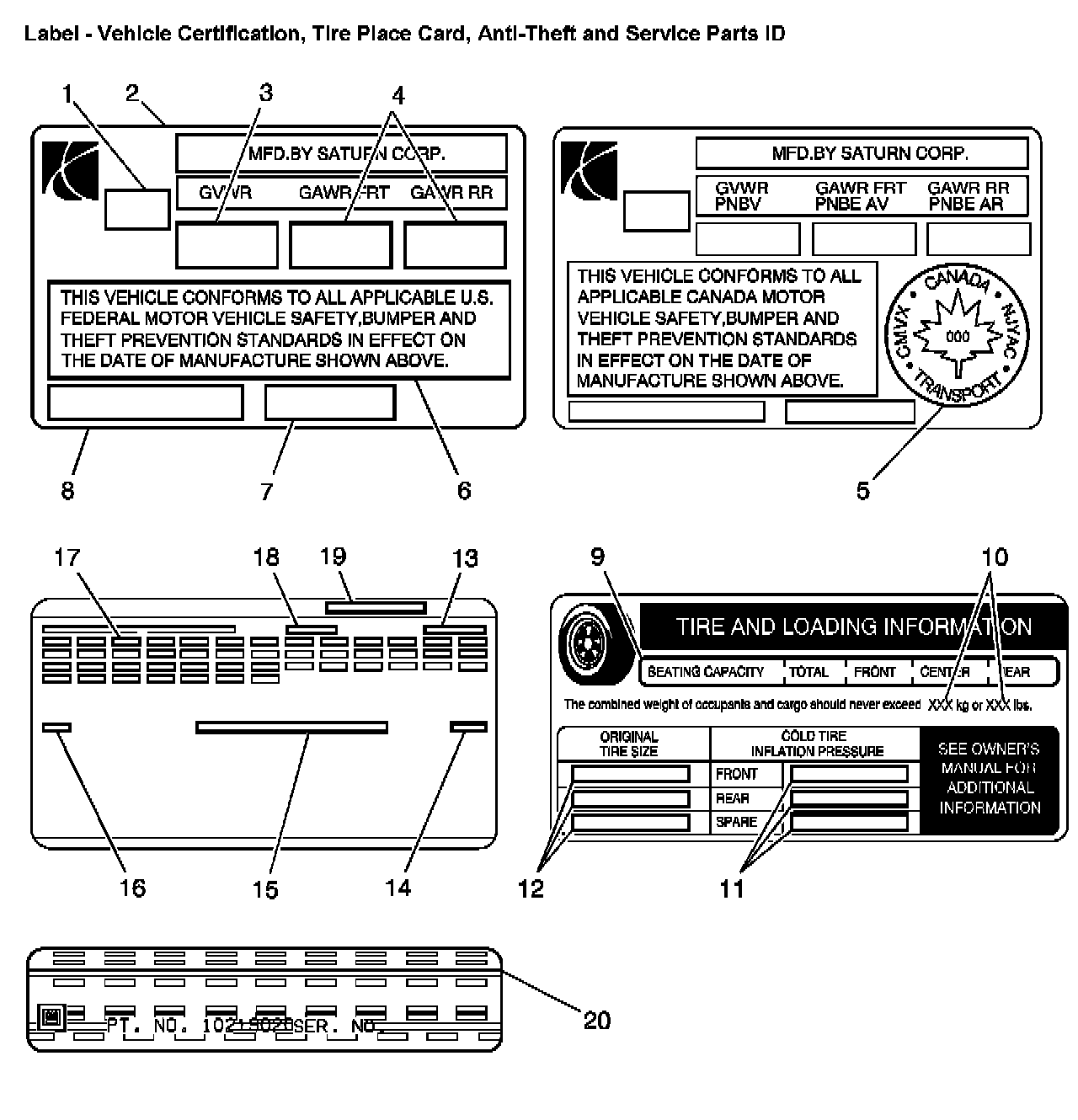 Label - Vehicle Certification, Tire Place Card, Anti-Theft And Service Parts ID: