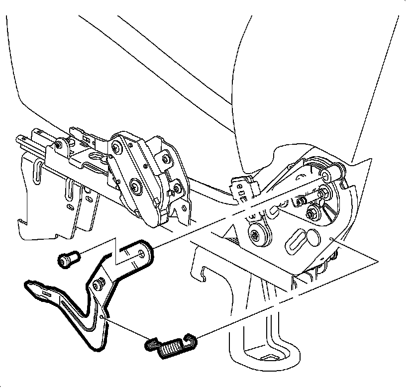 6. Remove the recliner handle bolt and spring. Remove the recliner handle.