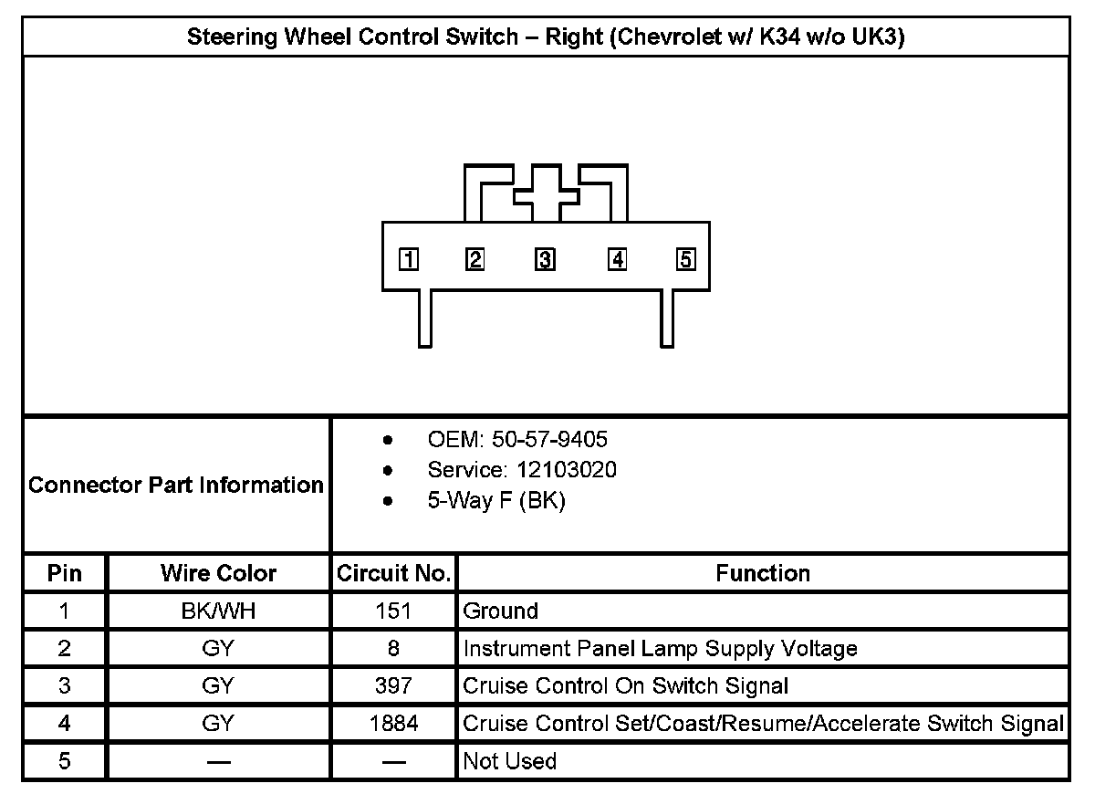 Steering Wheel Control Switch - Right (With RPO Code K34 Without RPO Code UK3):