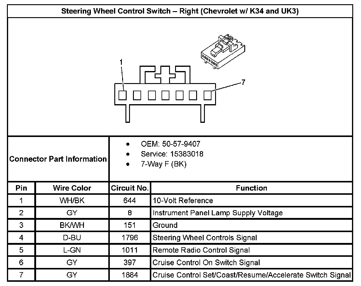 Steering Wheel Control Switch - Right (With RPO Code K34 And UK3):